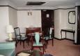 В сьютах: Спутниковое телевидение, кондиционер, цифровой сейф, прямой телефон, минибар. NB: феновномерах нет,можно попросить фенrecepion.Executive suite:небольшая спальня, маленькая гостиная, балкон, ванна.Panorama suite:большая спальня, большая гостиная, красивая деревянная мебель, сейф.Presidential suite (penthouse):огромная гостинаябарной стойкой, большая спальня, ваннаяджакузи, два туалета, резная мебель ручной работы, сейф.